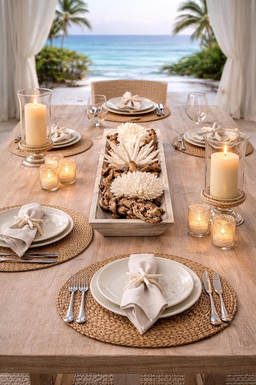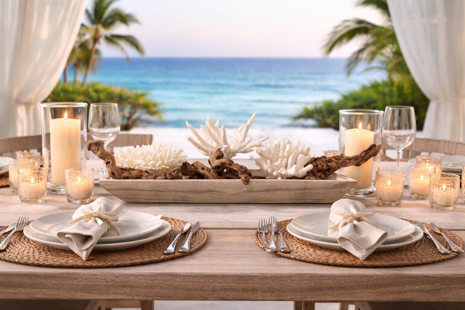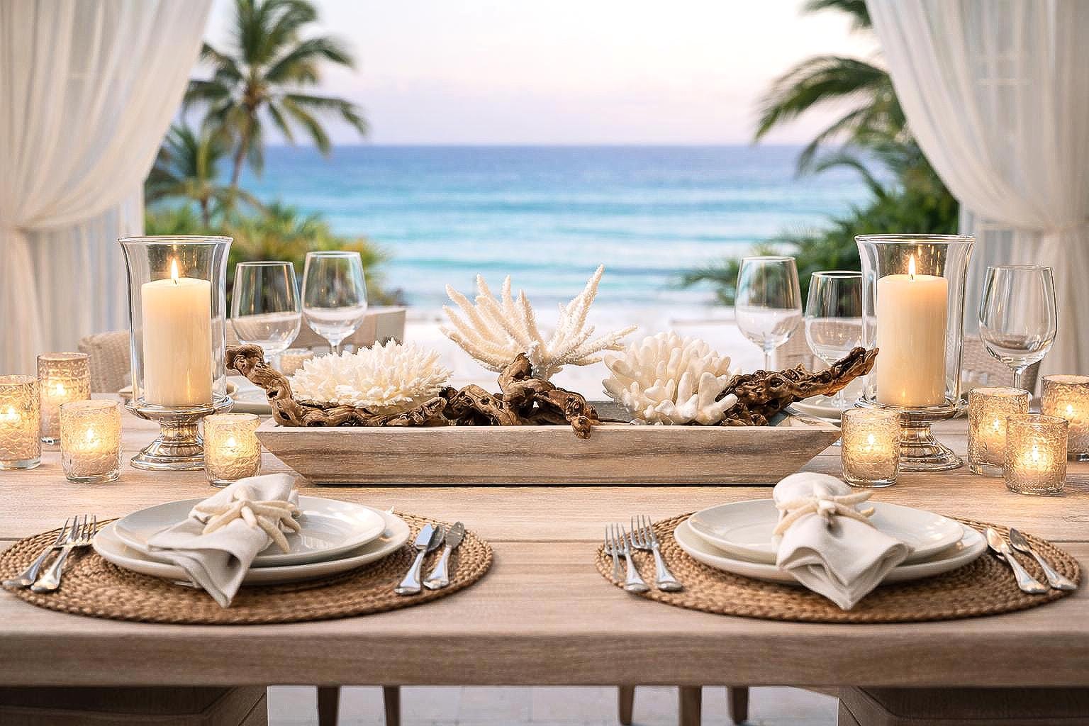 • Luxury beach wedding table décor