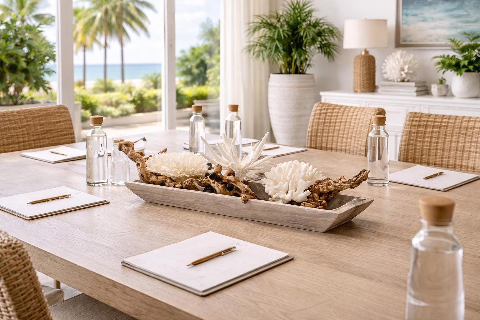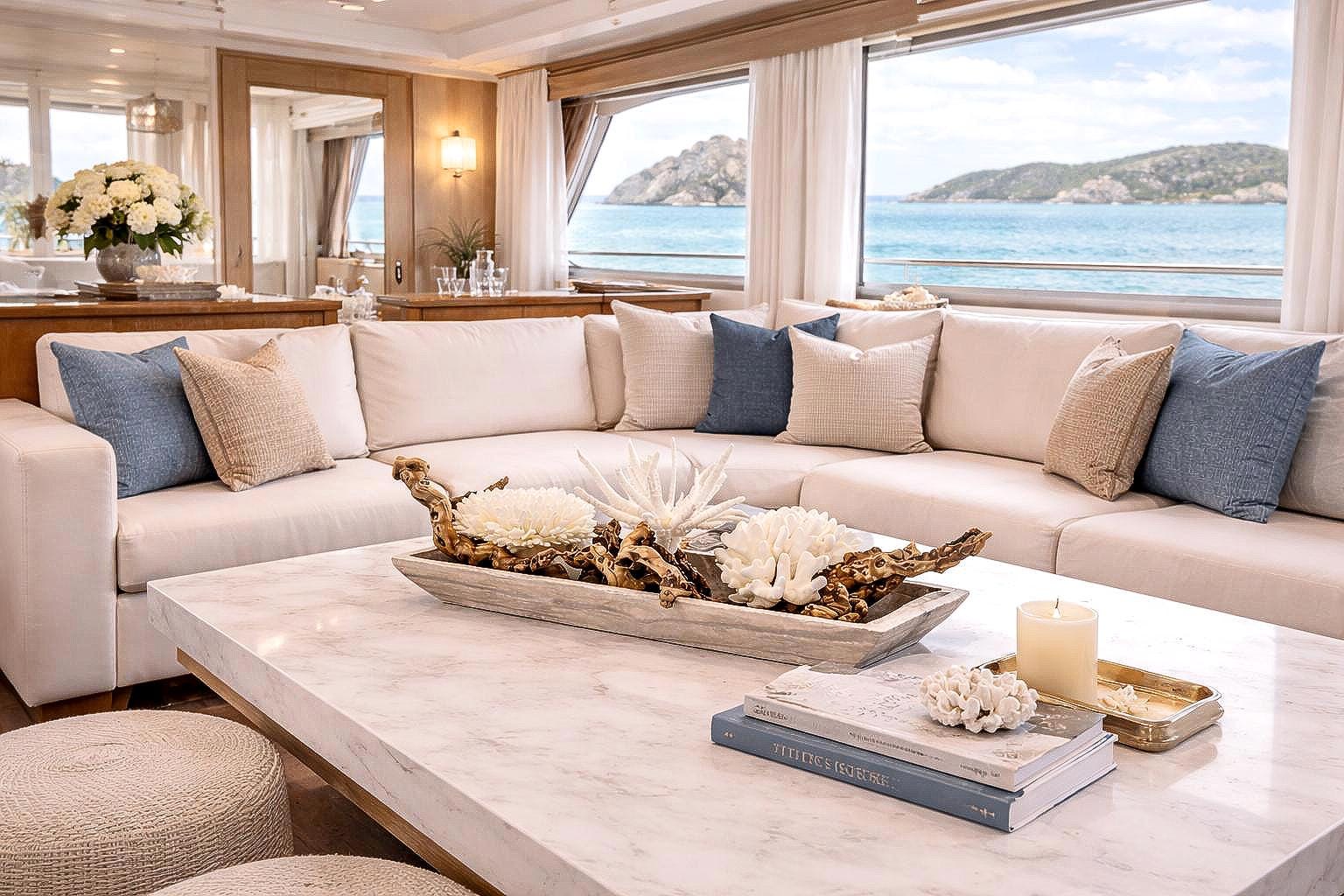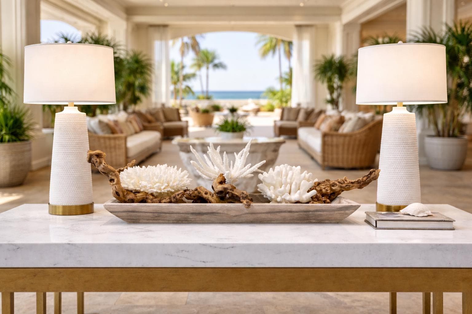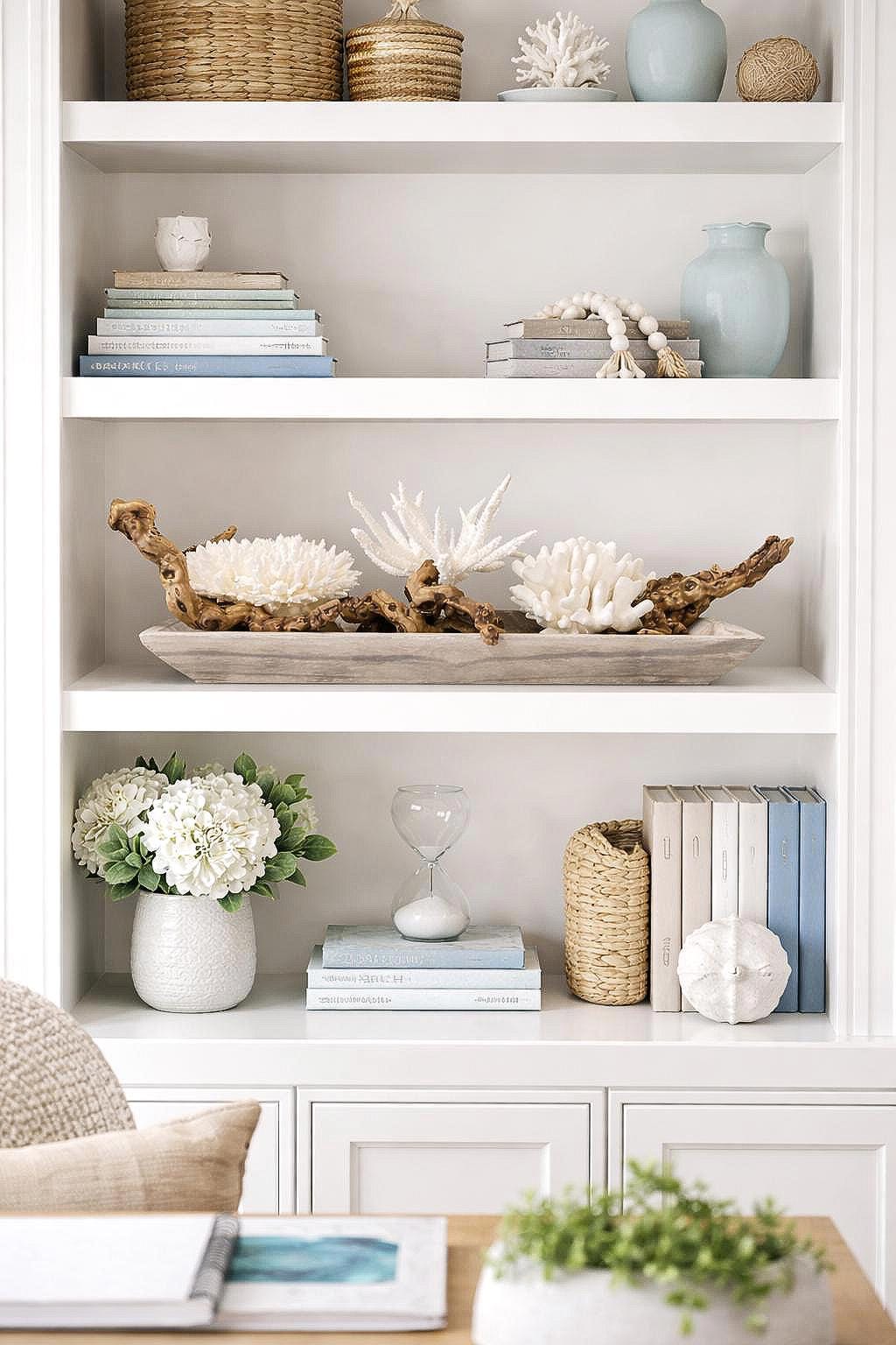 • Coastal living room coffee table focal point