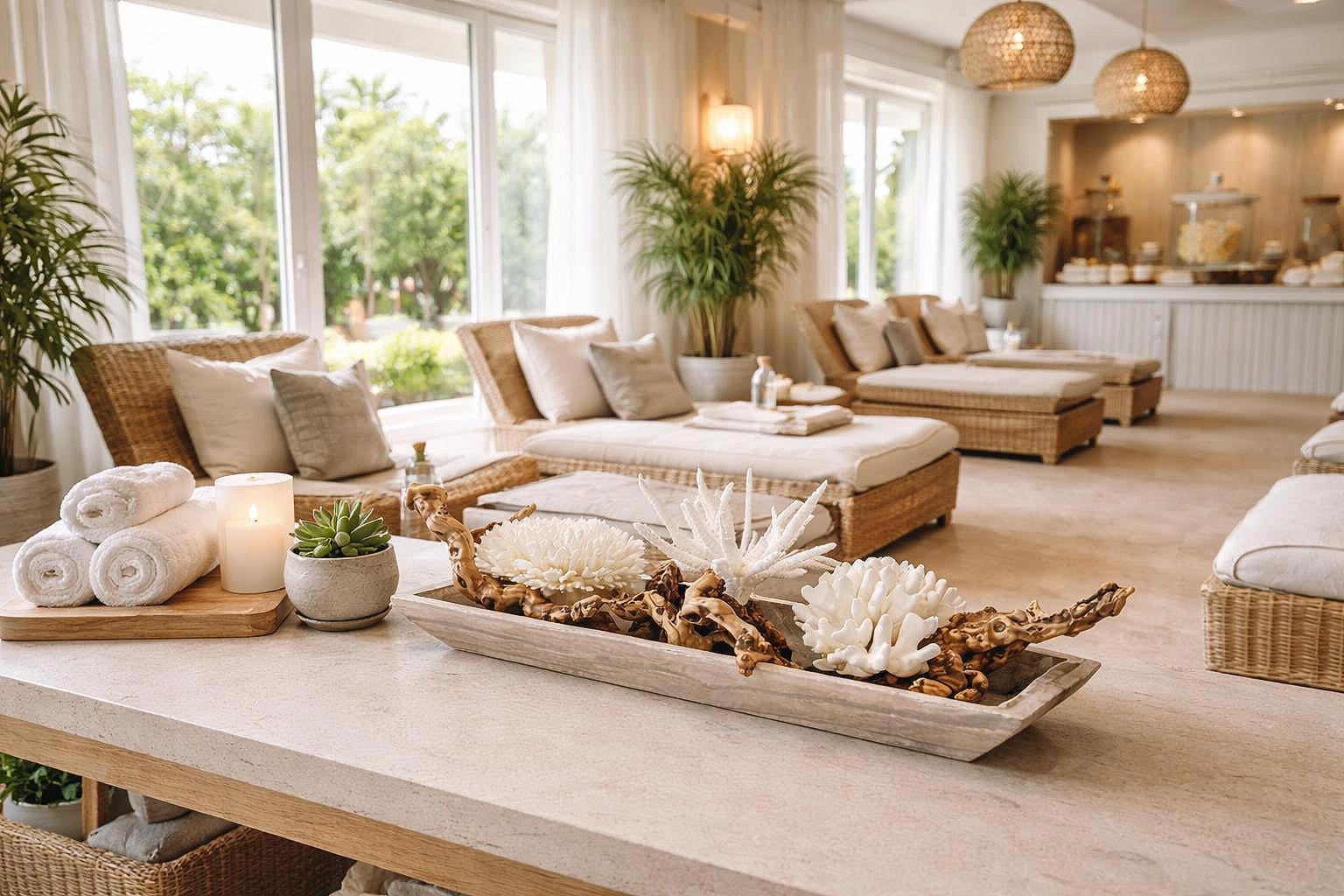 • Upscale resort or spa styling