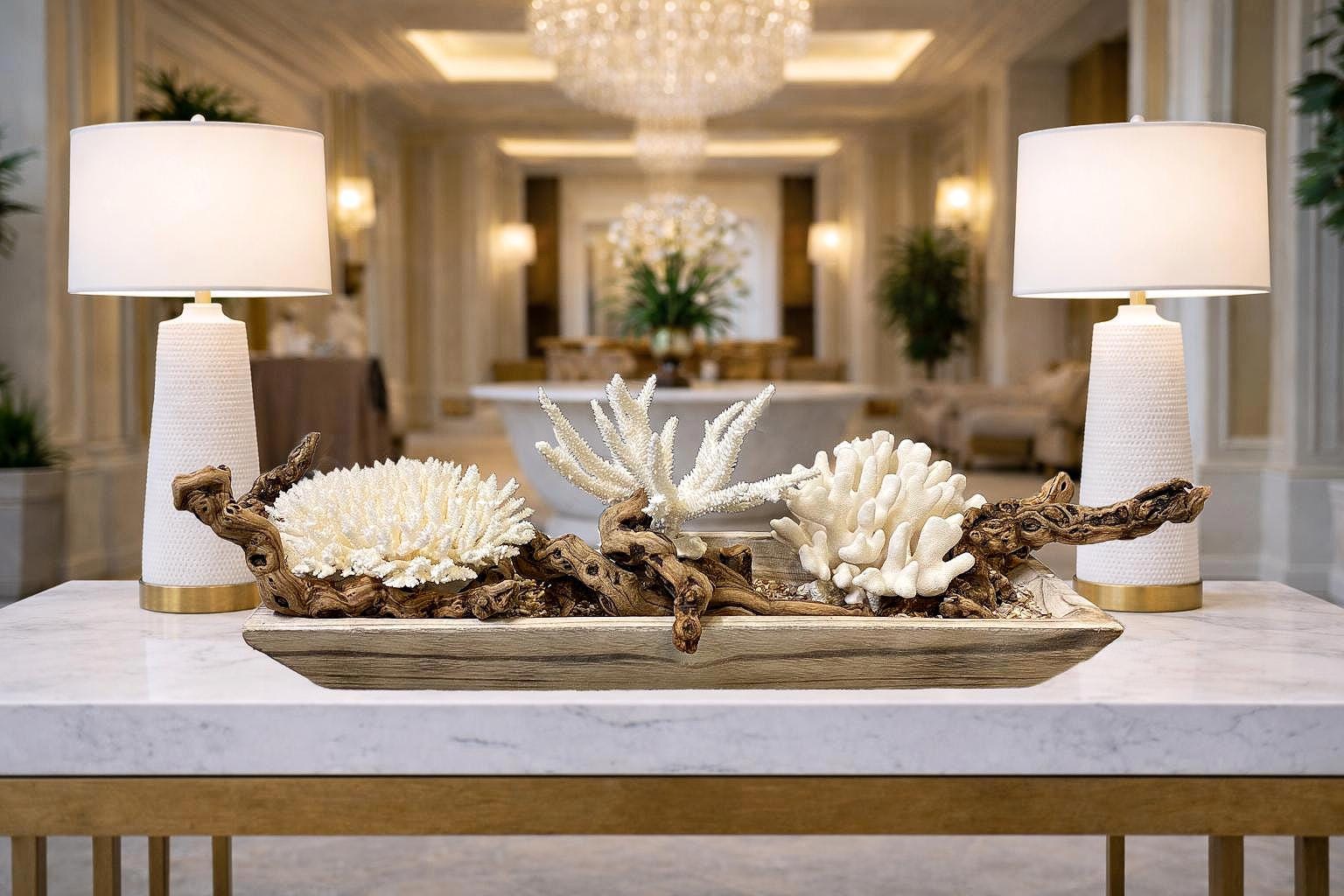 White Coral & Grapewood Coastal Statement | Luxury Coastal Decor | Beach House Centerpiece | One of a Kind
